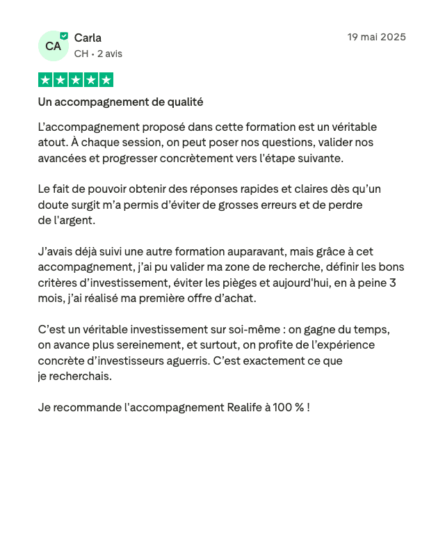 En 2019, Steven a fondé Realife qui accompagne les investisseurs à développer des projets très rentables grâce à un accompagnement ultra personnalisé.